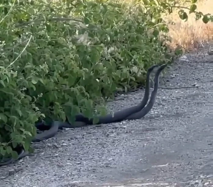 Malatya’nın Doğanşehir ilçesinde, yol kenarında çiftleşme dansı yapan iki yılan vatandaşın cep telefonu kamerasıyla görüntülendi.
