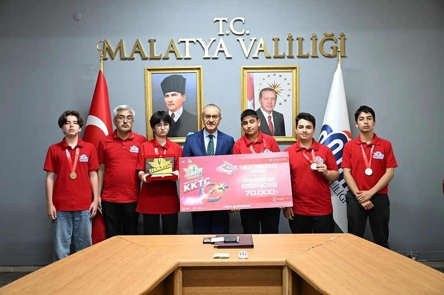 Kuzey Kıbrıs Türk Cumhuriyeti’nde (KKTC) düzenlenen TEKNOFEST 2025 yarışmasında Türkiye birinciliği elde eden Malatyalı öğrenciler, Malatya Valisi Seddar Yavuz’u makamında ziyaret etti.