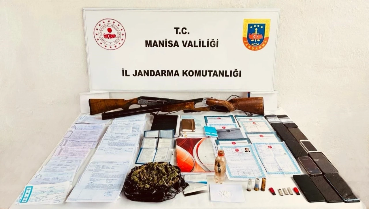 Şüphelilerin yakalanması ve suç unsurlarının ele geçirilmesi amacıyla bugün düzenlenen operasyona Manisa İl Jandarma Komutanlığı KOM ve İstihbarat Şube Müdürlüğü ile Alaşehir, Sarıgöl ve Akhisar İlçe Jandarma Komutanlıklarından toplam 133 personel katıldı. Alaşehir, Sarıgöl ve Akhisar ilçelerinde 12 şüpheliye ait 12 adres ile 2 araçta gerçekleştirilen aramalarda 30 adet senet (toplam 3 milyon 622 bin 150 TL), 124 adet boş senet, 2 adet çek (toplam 560 bin TL), 25 adet araç satış sözleşmesi, 3 adet araç ruhsatı, 11 adet tapu, 3 adet ihbarname, 2 sayfa alacak-verecek belgesi, 26 gram uyuşturucu madde, 2 adet av tüfeği, 18 adet cep telefonu, 6 adet ajanda ve 4 adet harici bellek ele geçirildi.