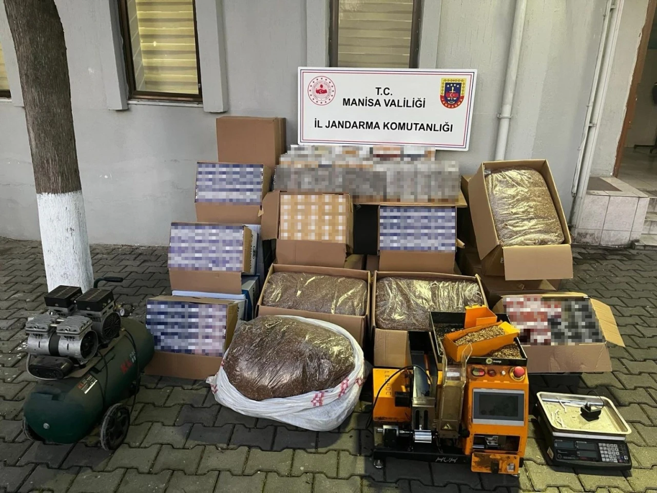 İl Jandarma Komutanlığı KOM Şube Müdürlüğü ve Şehzadeler İlçe Jandarma Komutanlığı ekiplerince F.K. ve M.K. isimli şüphelilerin elektronik sigara sarma makinesiyle dolum yaptığı tespit edildi. Şüphelilerin adreslerine düzenlenen operasyonda 10 bin 500 adet dolu makaron, 142 kilogram açık kıyılmış tütün, 130 adet kesilmiş bandrol, bin 450 adet sigara sarma kağıdı, çok sayıda kilit poşet, 2 kilogram nargile tütünü, 1 adet elektronik ticari sigara sarma makinesi, 1 adet kompresör, 1 adet dijital elektronik terazi, 151 bin 800 adet boş makaron ele geçirildi. Şüphelilerden F.K.’nın adliyeye sevk edileceği öğrenildi.
