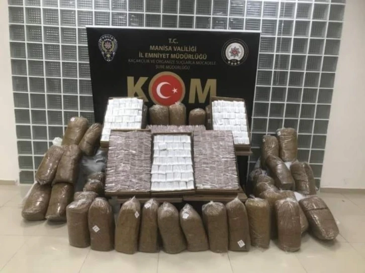 Manisa İl Emniyet Müdürlüğü Kaçakçılık ve Organize Suçlarla Mücadele Şube Müdürlüğünce, Kaçakçılıkla Mücadele Kanununa Muhalefet suçunun önlenmesine yönelik, Salihli, Kırkağaç ve Akhisar, Soma ve Turgutlu ilçelerimizde İstihbarat Şube Müdürlüğü destekli operasyonlarda N.K. (39), Z.D. (59), A.K (41), O.O. (39), R.B. (31), İ.B. (54) isimli 6 şüpheli şahıs yakalandı. Şüpheli şahısların ikamet, araç, işyeri ve depo olarak kullandığı yerlerde yapılan aramalarda ise toplamda 53 bin 160 adet doldurulmuş sigara, 295 kilogram kıyılmış tütün, 5120 dal kıyılmış tütün ile dolu makaron, 6.75 kilogram bandrolsüz kıyılmış tütün, 1.76 kilogram bandrolsüz nargile tütünü, 506 Paket muhtelif markalarda gümrük kaçağı sigara, 20 paket muhtelif markalarda puro, 200 adet elektronik sigara, 140 adet cinsel içerikli macun, 20 adet cinsel içerikli jel ele geçirildi. Yakalanan 6 şüpheli şahıs hakkında 5607 SKM suçu kapsamında adli işlemlere başlandığı bildirildi.