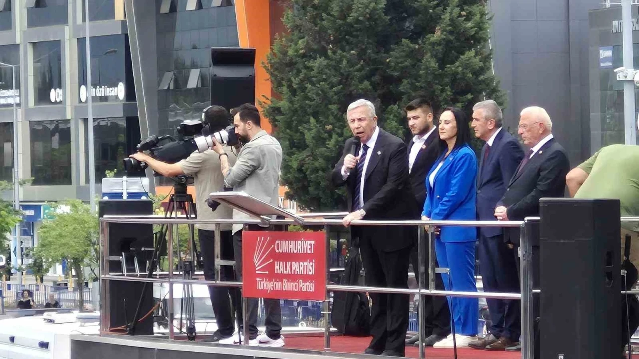 Düzce’de mitinge katılan Mansur Yavaş, "Yargılanmaktan korkmuyoruz. Hiçbirimizin dokunulmazlığı yok. Burada adalet istemeye geldik. Ekrem Başkan için, seçilmiş belediye başkanlarımız için geldik. Gençler, sadece anayasal haklarını kullandıkları için cezaevinde. Allah kimseyi düşürmesin bu duruma. Kendi çıkardıkları yasaya göre bile yatarı yokken, neden tutuyorsunuz bu çocukları? Çifte standart bitsin. Adalet tesis edilsin. Başımız dik şekilde, alnımız açık bir şekilde halkın karşısına çıkmak istiyoruz" dedi.