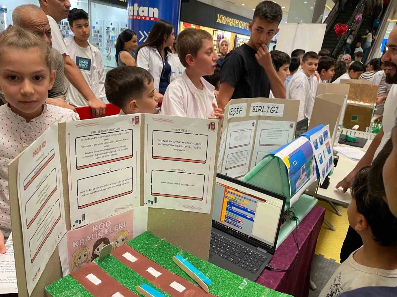 Robotik kodlama, yapay zeka, enerji çözümleri ve 3D tasarım gibi alanlarda hazırlanan projeler, hem teknolojik hem çevresel farkındalık temalarını bir araya getirdi. Genç katılımcılar, projelerini ziyaretçilere bire bir anlatarak hem deneyim kazandı hem de ilham verdi.