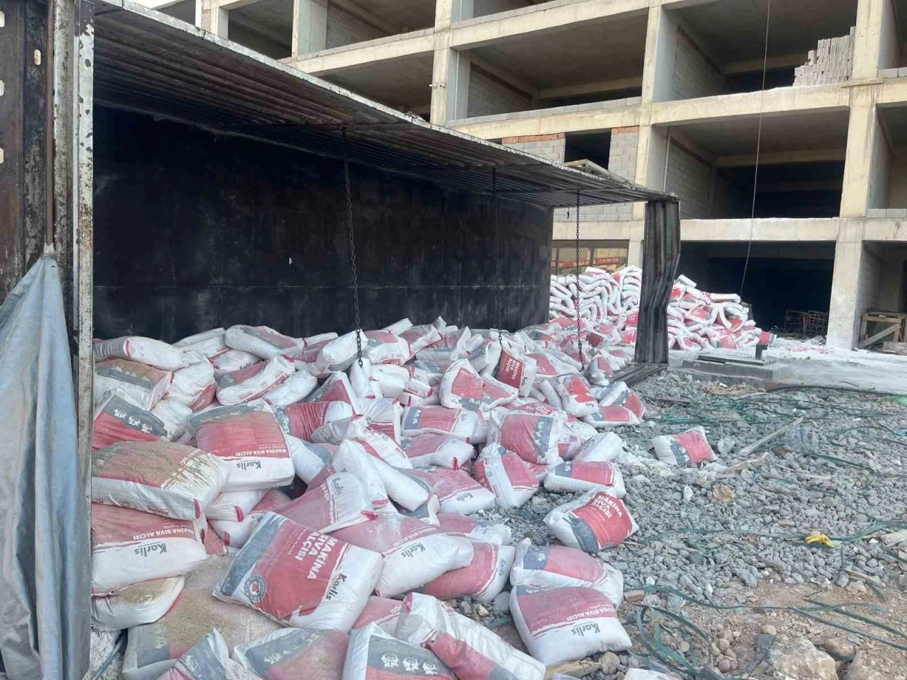 Tırda yüklü olan alçı torbaları yol kenarına savrulurken, polis ekipleri kaza ile ilgili inceleme başlattı.
