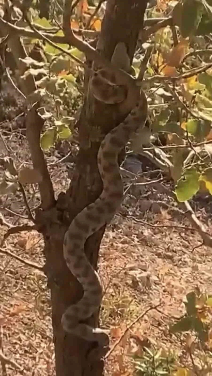Mardin’in Nusaybin ilçesine bağlı Bagok Dağı bölgesinde ağaca tırmanan engerek yılanı, vatandaşın cep telefonu kamerasına yansıdı.