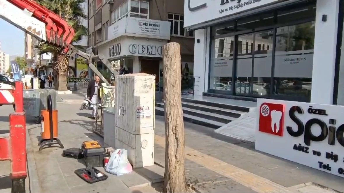 Olay, gece saatlerinde Kızıltepe ilçesi Cumhuriyet Mahallesi’nde meydana geldi. Edinilen bilgiye göre, gece saatlerinde kimliği belirsiz kişiler tarafından kaldırım üzerinde bulunan ağaçlar elektrikli testere ile kesildi. O anlar bir vatandaşın cep telefonu kamerasına yansıdı.
