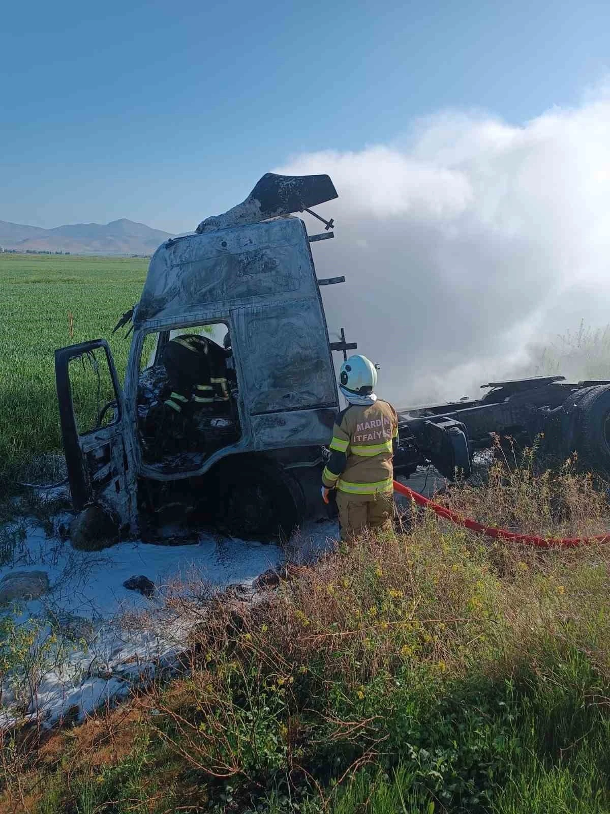 Mardin’de seyir halindeyken alev alan tır yandı.