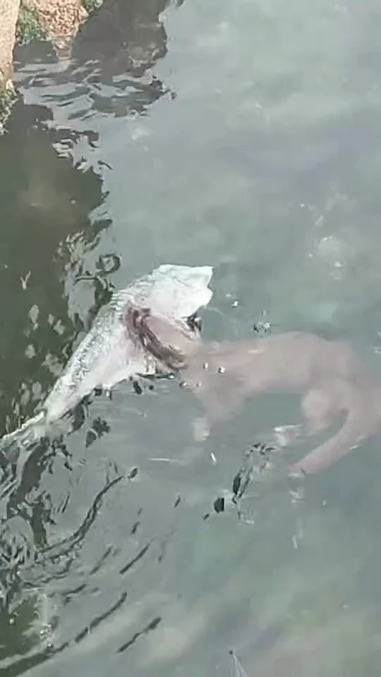 Sahil bölgesinde denize bakan vatandaşlar, suyun yüzeyinde kısa süre kalan bir su samurunu fark etti. Balık avladığı görülen su samuru, yakaladığı balığı yedikten sonra gözden kayboldu. O anlar çevredeki vatandaşlar tarafından cep telefonu kamerasıyla kaydedildi.