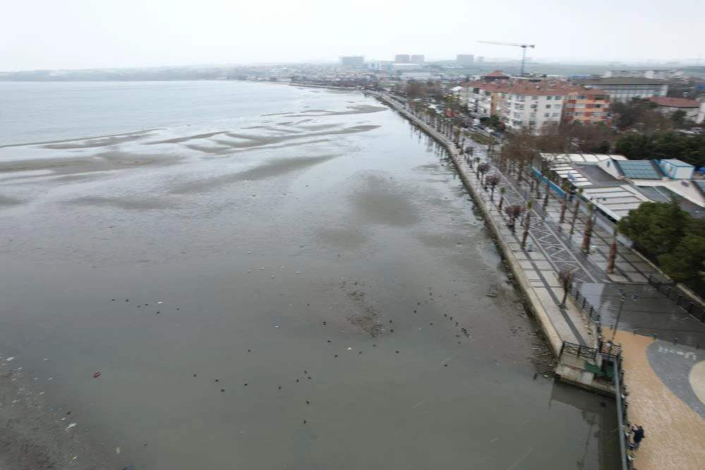 İstanbul’un Silivri ilçesinde Marmara Denizi’nin yaklaşık 150 metre çekilmesi dikkat çekti. Deniz seviyesindeki düşüşle birlikte kıyıda küçük adacıklar oluştu. Havadan çekilen görüntülerde, ortaya çıkan toprak alanların genişliği net bir şekilde görüldü.