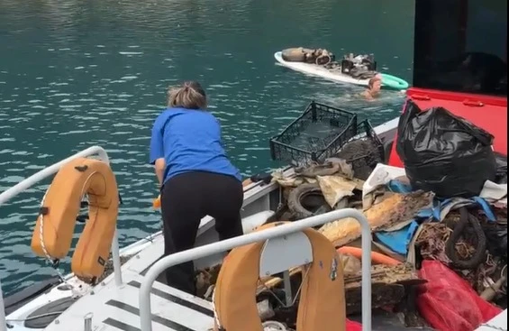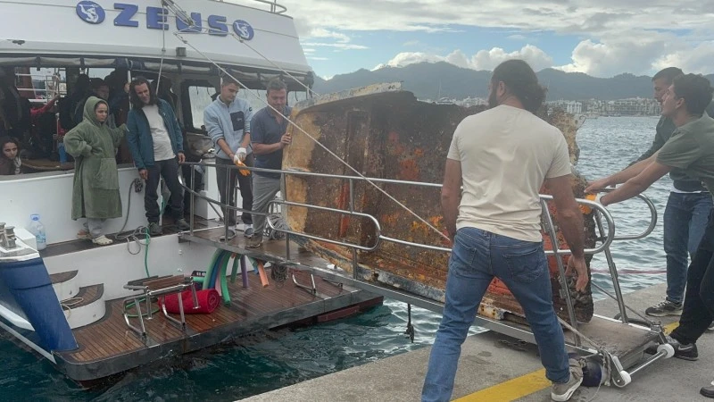 Marmaris Çevre Gönüllülerinden Eray Yılmaz, denizin 12 metre dibinden çıkardığı tekne parçasıyla ilgili, “Bu, denizlerimize duyarsız vatandaşlardan kalan bir atık. Zamanla plastik çözüle çözüle bu hale gelmiş. Daha fazla kirletmemesi için çıkardık. Marmaris dünyanın en güzel yeri, dünyanın incisidir.” ifadelerini kullandı.
