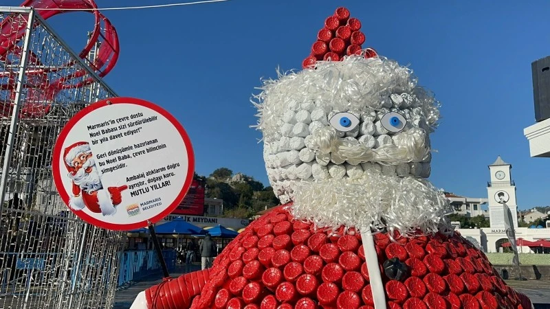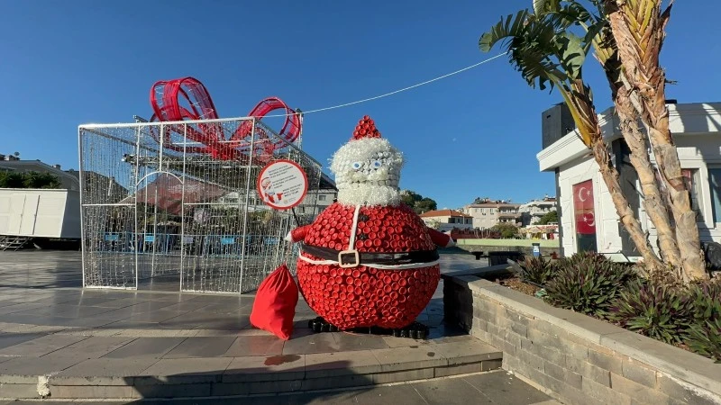 Meydanı ziyaret eden vatandaşların büyük ilgisini çeken geri dönüşüm Noel Baba figürü, hem yılbaşı atmosferine renk kattı hem de sürdürülebilirlik konusunda farkındalık oluşturdu.