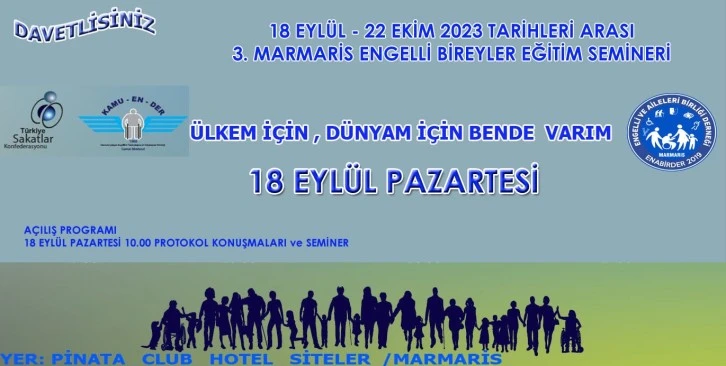 Marmaris, Türkiye Sakatlar Derneği ve Kamu-En-Der derneği tarafından düzenlenen "3. Marmaris Engelli Bireyler Eğitim Semineri" ile engelli bireylerin yaşamlarını iyileştirmeyi hedefliyor.