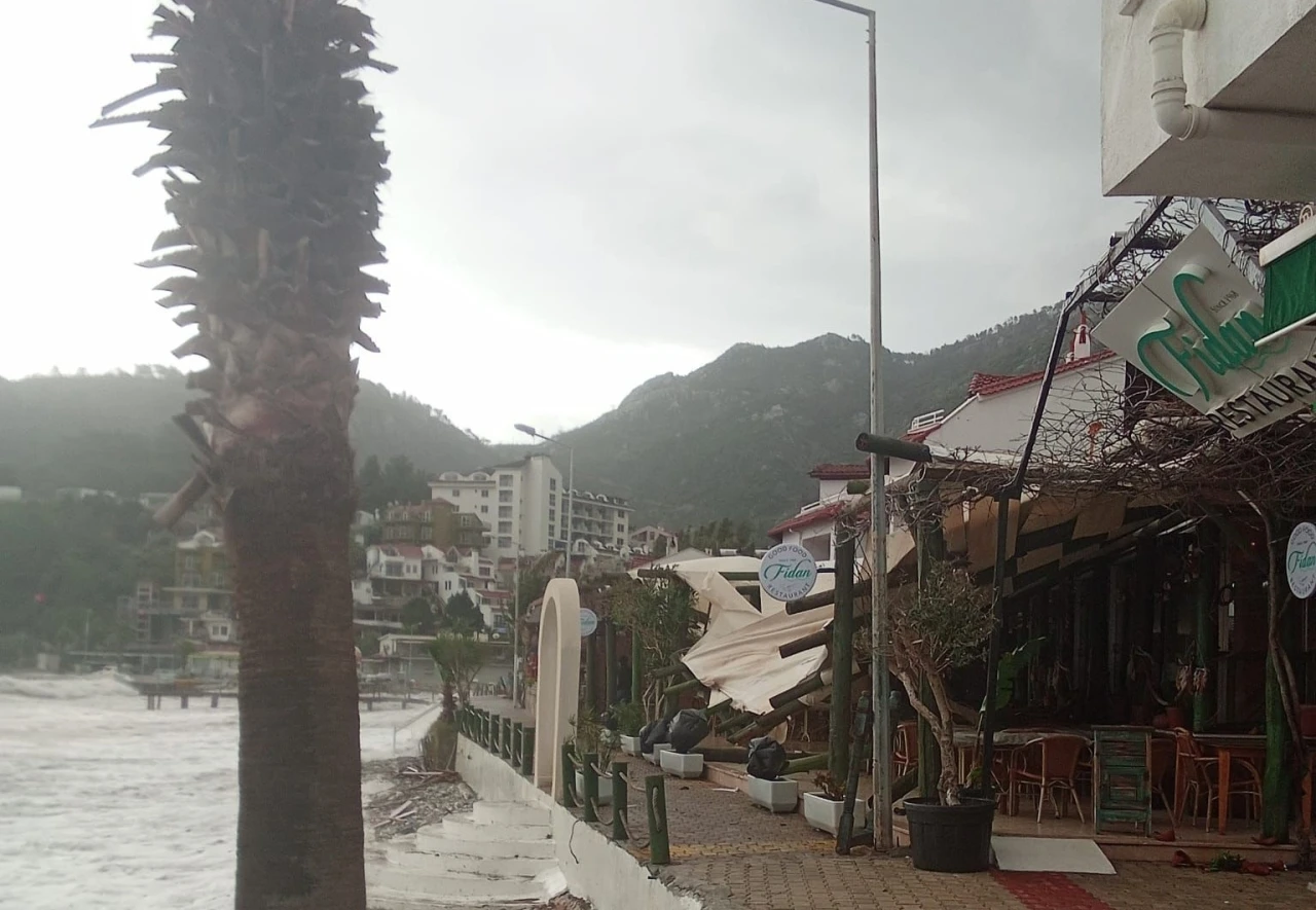 Muğla’nın Marmaris ilçesinde etkili olan şiddetli yağış ve fırtına hayatı olumsuz etkiledi. Tekneler kıyıya sürüklenirken, ev ve iş yerlerinin çatıları zarar gördü. Meteoroloji 4. Bölge Müdürlüğü’nün Bodrum ile Kaş arasındaki kıyı şeridi için yaptığı şiddetli fırtına uyarısının ardından Marmaris’te de olumsuzluklar yaşandı. İlçe merkezindeki balıkçı barınağında küçük tekneler su alarak batarken, İçmeler Mahallesi’nde tekneler kıyıya sürüklendi ve bazıları su alarak battı. Turunç Mahallesi’nde ise şiddetli rüzgar nedeniyle bazı iş yerlerinin çatıları çöktü. Marmaris Kaymakamı Nurullah Kaya, ilçede yaşanan fırtına ve yağışla ilgili bu tür durumlara karşı kurulan kriz merkezinin, meteorolojinin uyarıları doğrultusunda bayramın ilk gününden itibaren hem ilçe merkezinde hem de kırsal mahallelerde teyakkuz halinde olduklarını belirtti. Kaya ayrıca, İçmeler Limanı’nda bazı tekneler su alarak battı, bazıları ise kıyıya sürüklenmesine dair İlgili birimlerin müdahale için çalışmalarını sürdürdüğünü ve şu ana kadar herhangi bir can kaybı ya da yaralanma yaşanmadığını belirtti. Ekipler sahada çalışmalarını sürdürürken, yetkililer de fırtınanın etkisini sürdürebileceğini belirterek vatandaşlara dikkatli olmaları çağrısında bulundu.