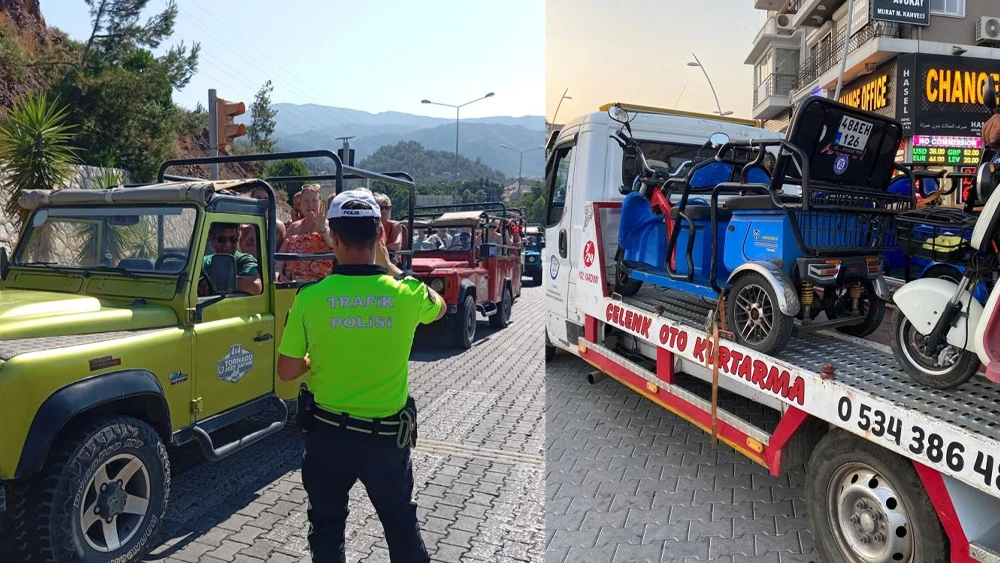 Edinilen bilgiye göre yapılan denetimlerde; 13 safari aracı, 116 motosiklet ve 36 araç kontrol edildi. Kurallara uymayan 98 motosiklet sürücüsüne toplam 109 bin 578 TL para cezası uygulandı. Ayrıca haciz ve yakalama kaydı bulunan 4 safari aracı ile hatalı park nedeniyle 4 üç tekerlekli motosiklet otoparka çekildi. Trafik ekiplerinin denetimlerinin aralıksız olarak süreceği bildirildi.