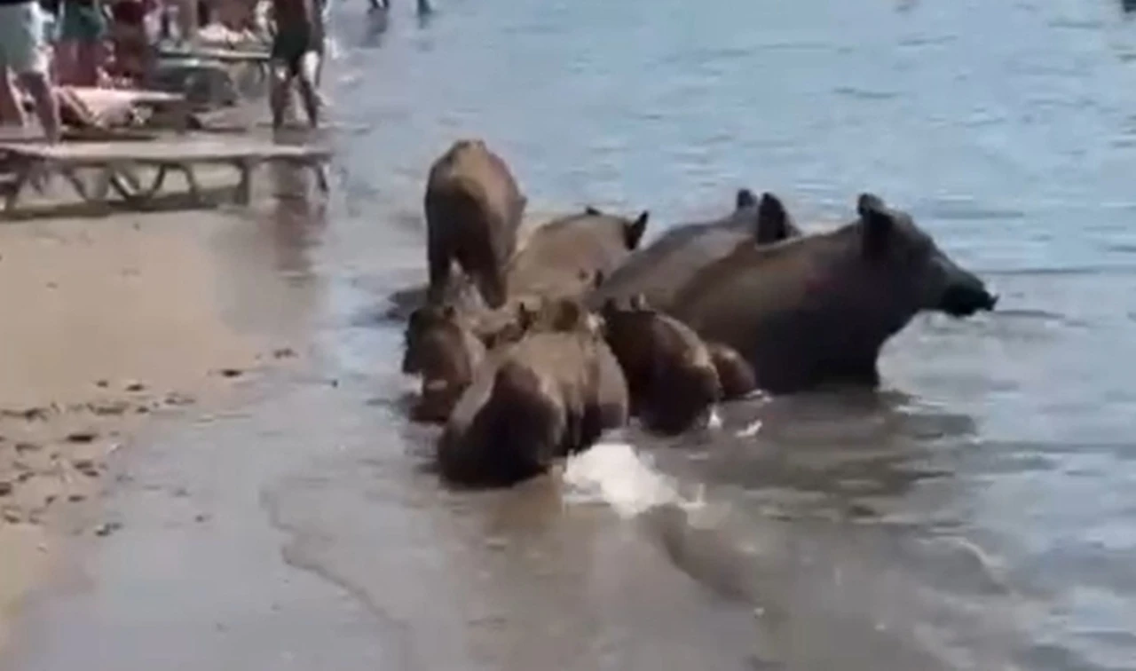 Marmaris şehir merkezinde toplanmayan çöpleri karıştıran yaban domuzları sıradan hale gelirken, domuzların bu seferki durağı sahiller oldu. Siteler Mahallesi’nde yaban domuzları tatilcilerin şaşkın bakışları arasında sahilde dolaştı. Yavrularıyla birlikte sahil boyunca yiyecek arayan domuzlar, daha sonra denize girdi. Plajda gezen domuzlar, denizde bir süre vakit geçirdikten sonra sahilden ayrıldı. Turistler ise yaşanan ilginç anları cep telefonlarıyla kaydetmeyi ihmal etmedi.