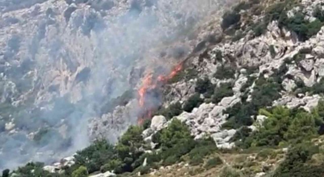 Muğla’nın Marmaris ilçesinde makilik alanda çıkan ve karadan ulaşımın sağlamadığı makilik alan yangına havadan müdahale ediliyor.