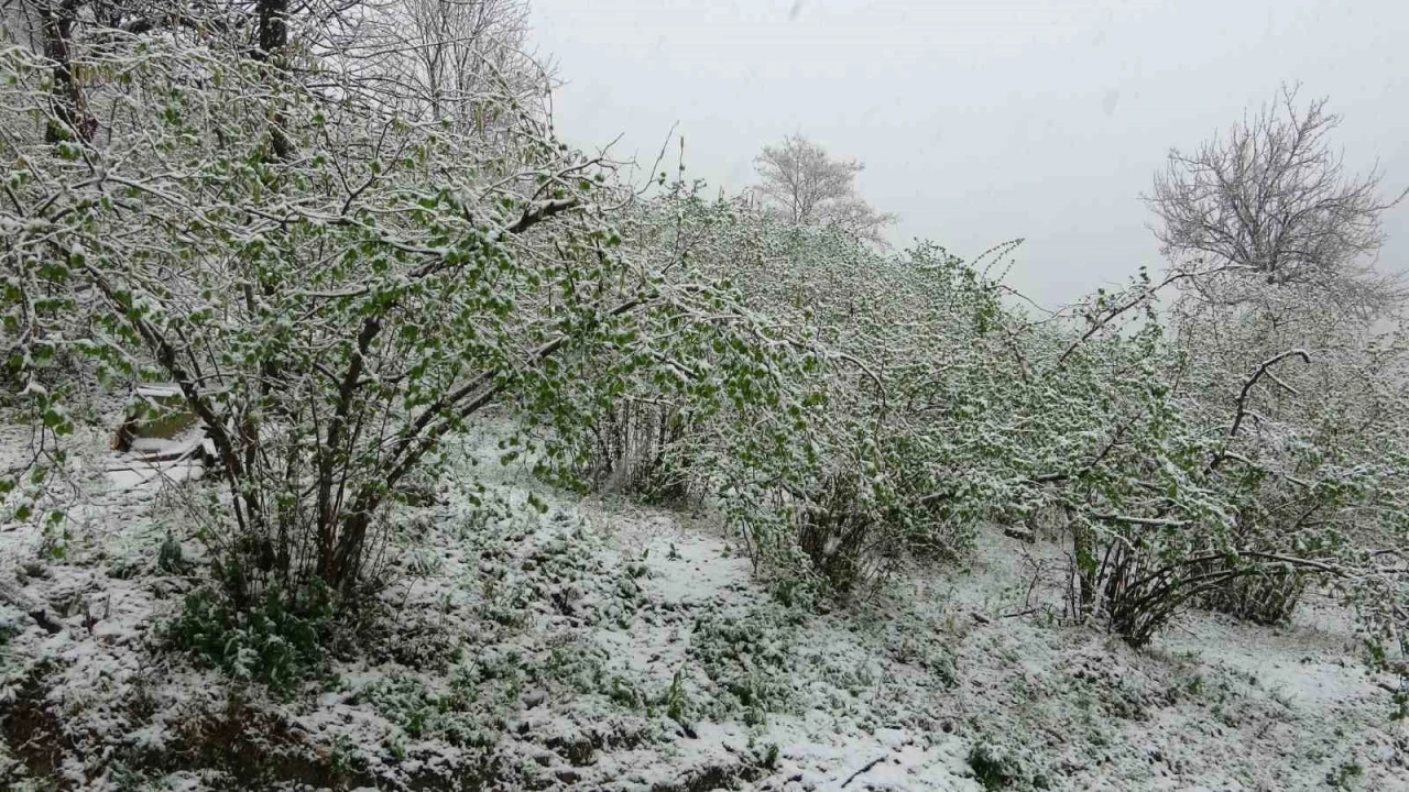Meteoroloji Genel Müdürlüğü’nün soğuk hava uyarısının ardından sabah saatlerinden itibaren başlayan kar yağışı, çiçek açan fındık dallarını kar altında bıraktı. Fındık üreticileri, bu durumun her yıl risk oluşturduğunu belirterek olası zirai don tehlikesine karşı tedirgin olduklarını ifade etti.