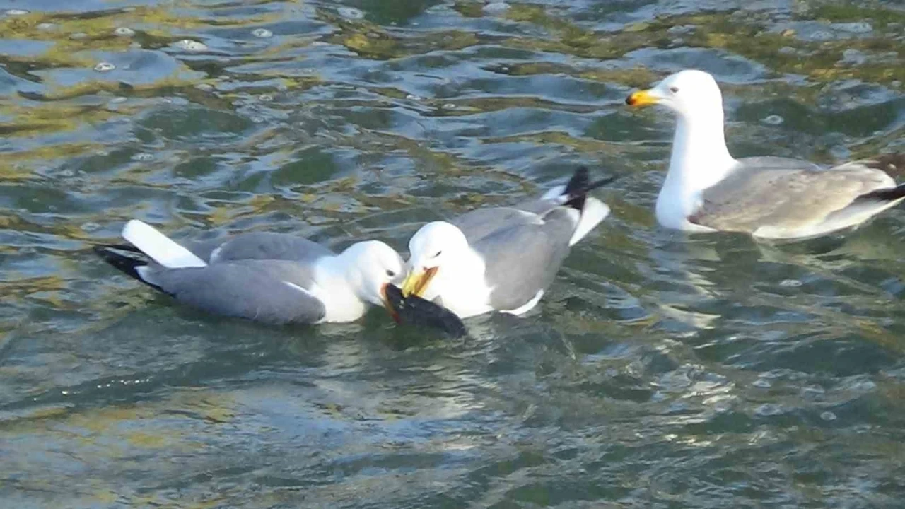 Van Gölü’nde yaşayan endemik tür olan inci kefali, yumurtalarını bırakmak için tatlı su yataklarına yaptıkları muhteşem göç devam ederken balıkları avlamaya çalışan martıların birbirleri ile kavgasında ilginç görüntüler ortaya çıkmasına neden oluyor.