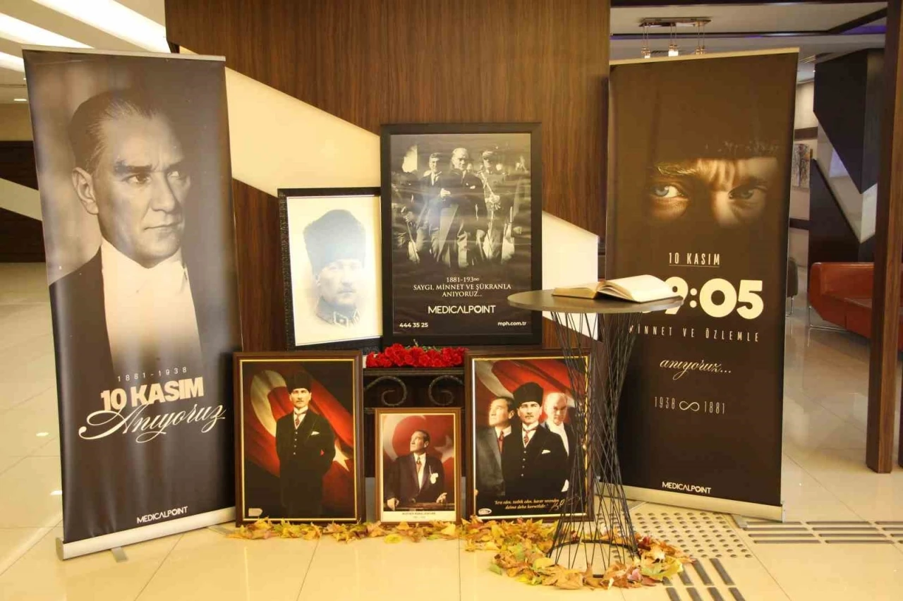 Medical Point Gaziantep Hastanesi olarak, Cumhuriyetimizin kurucusu ve Ulu Önder Mustafa Kemal Atatürk’ü, aramızdan ayrılışının yıl dönümünde düzenlediği törenle saygı ve minnetle andık. Tören öncesinde açılan anı defterine, hastane çalışanları ve misafirler Atatürk’e dair duygu ve düşüncelerini yazdılar.