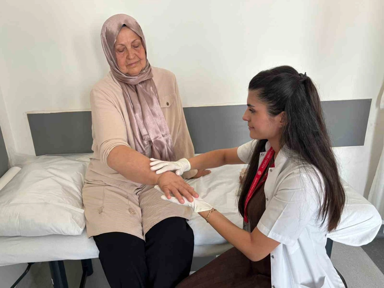 Hastalara cilt bakımı eğitimi verdiklerini ifade eden Fizyoterapist Şeymanur Sancar, "Tedavi sürecimizde öncelikle hastaya cilt bakımı ve temizliği eğitimi veriyoruz. Ardından manuel lenf drenajı uyguluyoruz. Lenfödemin tekrar bölgeye yerleşmemesi için kısa bandajlı özel basınç teknikleriyle bandajlama yapıyoruz. Bandajlama sonrası hastaların tedavisine kompresyon çorabı ile devam ediyoruz. Ayrıca ev egzersizlerini gösteriyoruz ve hastaları günlük yaşam aktivitelerinde nelere dikkat etmeleri gerektiği konusunda bilgilendiriyoruz. Hastalarımızın süreci yakından takip ediliyor ve tedavi planları gerektiğinde güncelleniyor. Bu multidisipliner yaklaşım sayesinde hem hastalar daha hızlı iyileşiyor hem de tekrar eden komplikasyonların önüne geçiyoruz" ifadelerini kullandı. "Fizik tedavi biriminden ciddi destek alıyoruz"