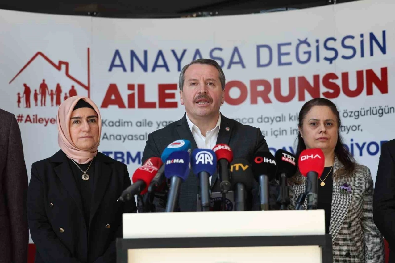 Kadınların başörtüsü takması nedeniyle ayrımcılığa uğramaması adına bu hususunun da Anayasa’da yer almasını isteyen Yalçın, "Yeni 28 Şubatların yaşanmaması, fırsat kollayan yasakçı zihniyetin yeniden hortlayacak bir zemin bulmaması amacıyla başörtüsü özgürlüğünü anayasal güvenceye kavuşturmak için Anayasa’nın 24’üncü maddesinde imza metnimizde detayları bulunan düzenlemenin yapılmasını istiyoruz. Gazi Meclisimizi bir beka meselesine dönüşen aileyi korumak, başörtüsü özgürlüğünü güvenceye kavuşturmak için sorumluluk almaya, gerekli anayasal düzenlemeyi yapmak noktasında harekete geçmeye çağırıyoruz" diye konuştu. "Eşcinselliği pazarlayan bir harekete karşı ailenin ifsat edilmemesi için güvence altına alınması gerektiğini düşünüyoruz"