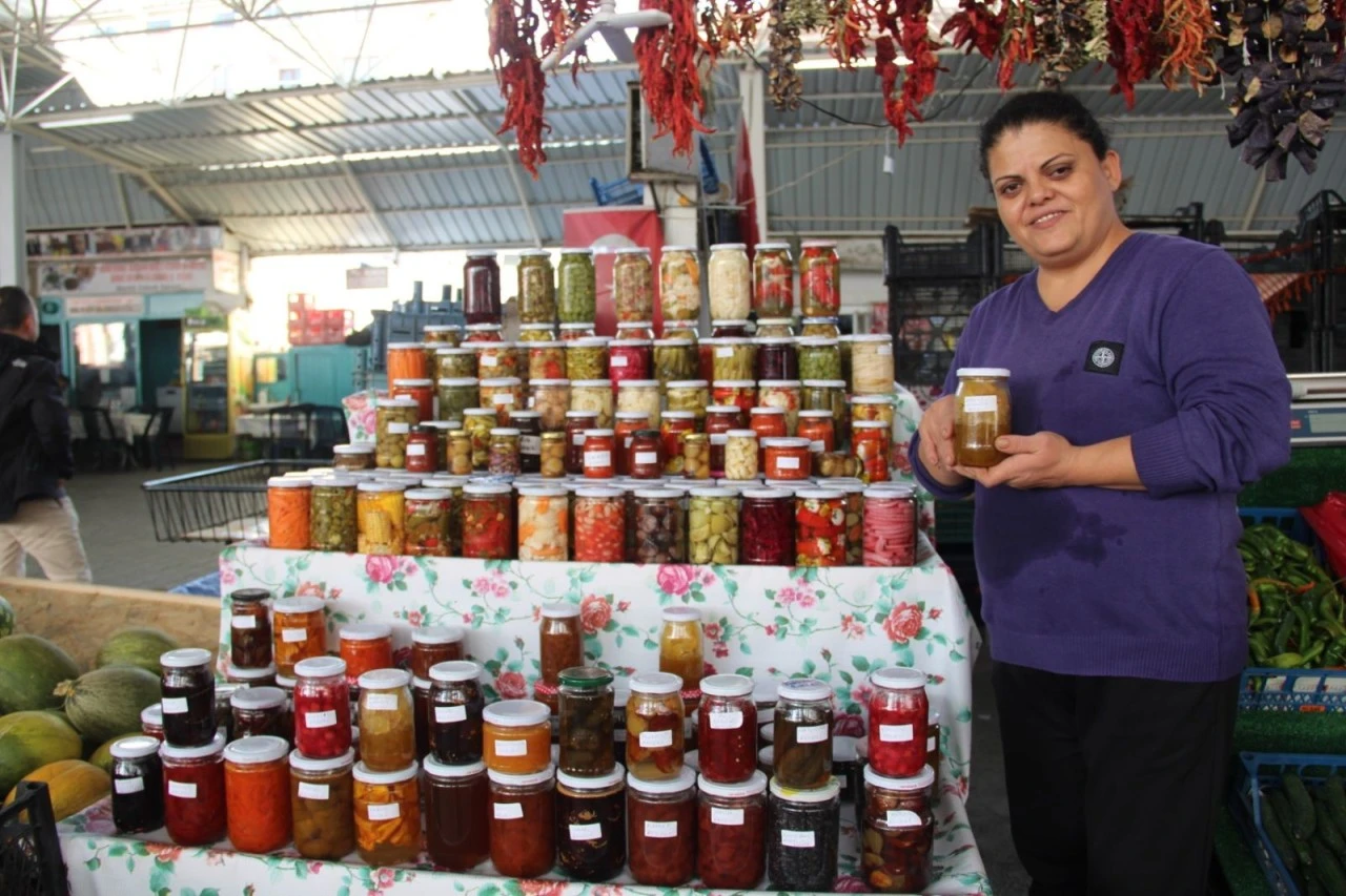 Muğla’nın Menteşe ilçesinde yaşayan 48 yaşındaki Ebru Yaraş, kendi elleriyle yaptığı onlarca çeşit reçelle pazaryerinin en renkli tezgahlarından birini oluşturuyor. "Mevsimi gelen her meyveden reçel yaparım" diyen Yaraş, hem emeğiyle hem de farklı tatlarla dikkat çekiyor.