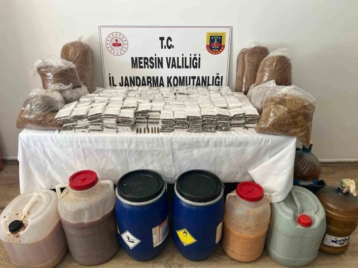 Mersin’de jandarma ekiplerinin düzenlediği operasyonda çok miktarda kaçak makaron, tütün ve sahte içki ele geçirildi.
