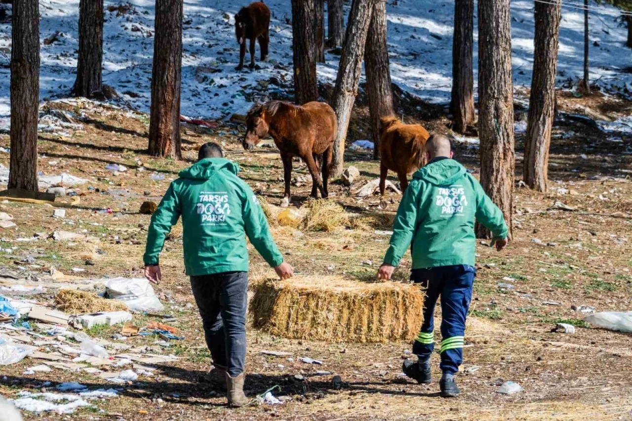 Mersin Büyükşehir Belediyesi ekipleri, Tarsus ilçesine bağlı Karboğazı mevkiinde yaşayan yılkı atlarını çayır otu ve arpa ile besledi. Ekipler, bölgede bulunan yabani köpekler için de mama bıraktı.