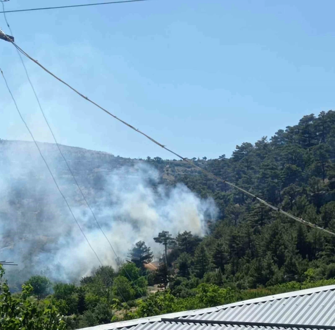 Soğutma çalışmalarının sürdüğü, bir dönüm alanın zarar gördüğü bildirildi.