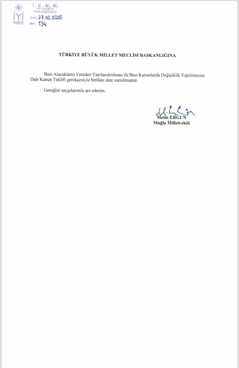 İYİ Parti Muğla Milletvekili Prof. Dr. Metin Ergun, ekonomik zorluklar nedeniyle vergi ve SGK borçlarını ödemekte güçlük çeken esnaf, KOBİ ve sanayicilere destek amacıyla yeni bir kanun teklifini Türkiye Büyük Millet Meclisi’ne sundu.