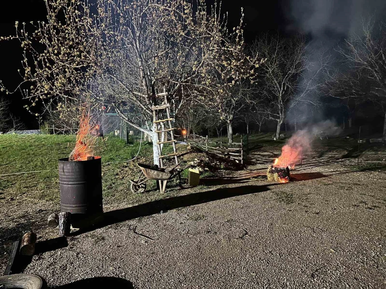 Karabük’ün Ovacık ilçesinde bir vatandaş, Meteoroloji Genel Müdürlüğü’nün zirai don uyarısının ardından meyve ağaçlarını korumak için ateş yakarak önlem aldı.