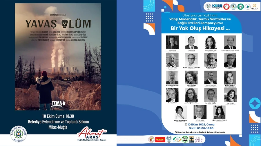 Muğla Büyükşehir Belediyesi tarafından 10 Ekim 2025 Cuma günü saat 09.00’da Milas Belediye Evlendirme ve Toplantı Salonu’nda başlayacak etkinlik, yönetmenliğini İlkan Nişancı’nın üstlendiği “Yavaş Ölüm” belgeselinin gösterimiyle sona erecek. TEMA Vakfı tarafından desteklenen ve Afşin-Elbistan Termik Santralleri’nin çevre ile insan sağlığı üzerindeki yıkıcı etkilerini konu alan belgesel, ilk gösterimini Altın Koza Film Festivali’nde yapmıştı.
