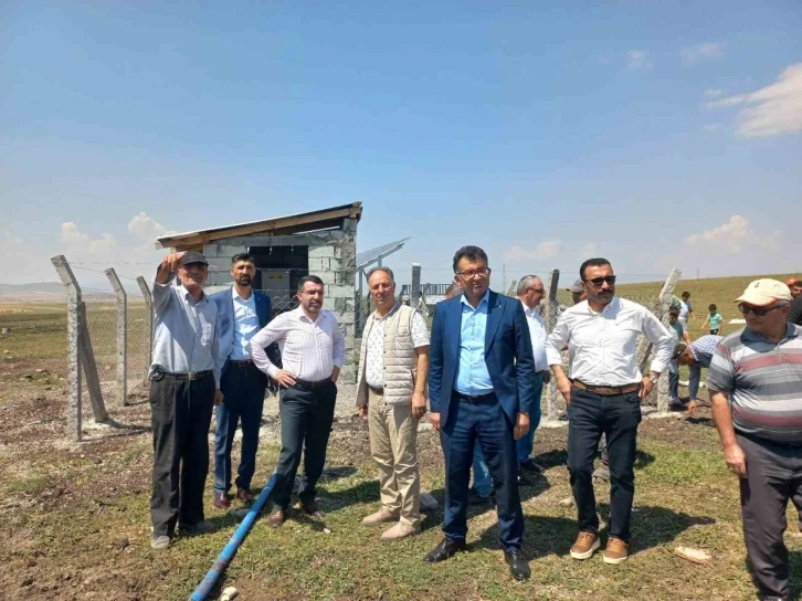 Çalkın, “Selim Gelinalan köyü Meralar Mevkii’nde yapılan sondaj ve kurulan güneş enerjisi ile meralar suya kavuştu. Böylece hem meramız hem de yaylım yapan hayvanlar sulanmış olacak. Dediğimiz gibi, biz memleketimizi seviyoruz. Gelişmesi kalkınması, modern imkanlardan yararlanması için gece gündüz çalışıyoruz. Her zaman üreticinin, çiftçimizin yanındayız” dedi.
