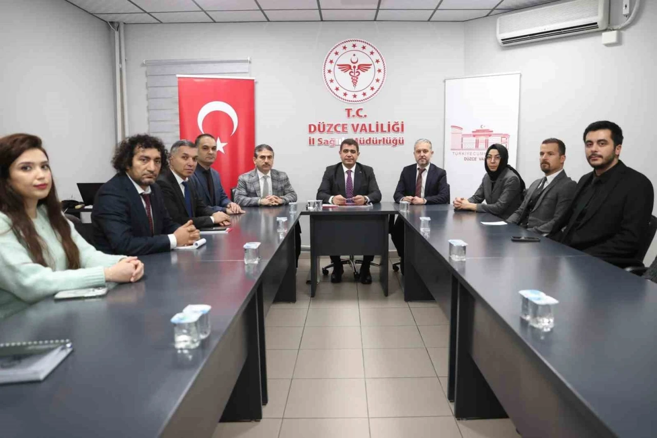 Düzce İl Sağlık Müdürlüğünde yapılan toplantıda Vali Selçuk Aslan, Sağlık İl Müdürü Yasin Yılmaz’dan 2024 yılında gerçekleştirilen çalışmalar ile 2025 yılında planlanan faaliyetler hakkında brifing aldı. Sağlık Müdürü Dr. Yasin Yılmaz, 2024 yılında 2 milyon 618 bin 60 kişiye poliklinik hizmeti, 878 bin 990 kişiye acil servis hizmeti, 54 bin 215 kişiye ameliyat, 3 bin 410 doğum, 2 milyon 814 bin 234 kişiye aile hakemleri tarafından hizmet verildi, 286 bin 15 kişiye ağız ve diş sağlığı hizmeti, 4 bin 339 bebeğe işitme tarama testi, 105 okulda 7 bin 883 öğrenciye işitme tarama testi, 40-69 yaş arası 11 bin 190 kadına meme kanseri mamografi taraması, 14 bin 560 kişiye serviks kanseri tarama testi, 9 bin 276 kişiye kolorektal kanser taraması verildiğini söyledi.