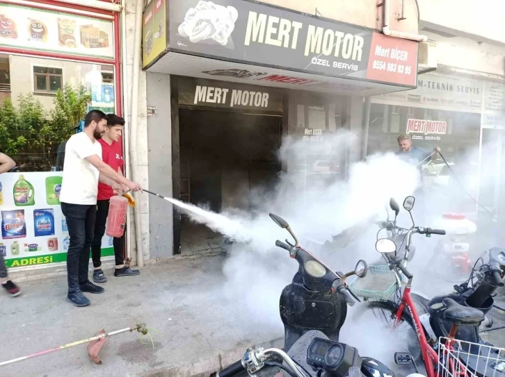 Çorum’un Osmancık ilçesinde bir tamirhanede bulunan motosiklet aniden alev aldı. Yangın paniği neden olurken, alevler çevre esnafının müdahalesiyle söndürüldü.