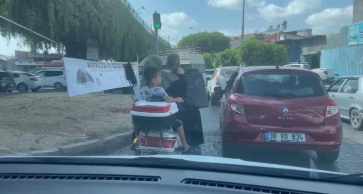 Merkez Seyhan ilçesi Güney Kuşak Bulvarında bir motosiklet sürücüsünün halı yıkama makisine taşıması görenleri şok etti. Bir kadın ve çocuğun da olduğu motosiklette kimsede kask olmaması da dikkat çekti. Sürücü vatandaşların şaşkın bakışları arasında tehlikeye aldırmadan yoluna devam etti. Bu anlar ise bir vatandaş tarafından anbean görüntülendi.