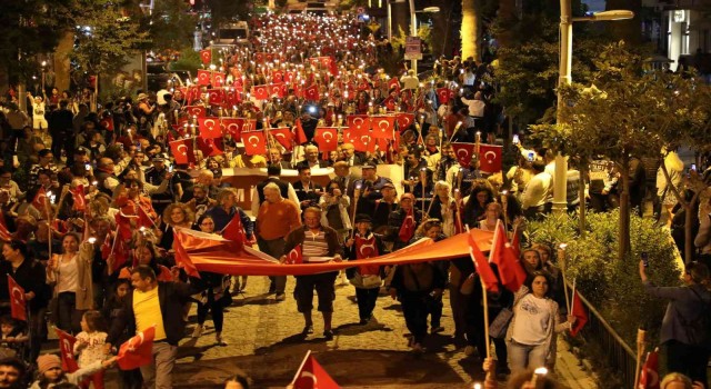 Muğla Büyükşehir Belediye Başkanı Dr. Osman Gürün, Datça Belediye Başkanı Gürsel Uçar ile birlikte yaklaşık 5 bin kişi, ellerinde bulunan bayrak ve meşalelerle birlikte Şenkaya kavşağından kortej yürüyüşünü başlattı. Datça Açık Hava Tiyatrosuna kadar süren Fener alayında renkli görüntüler yaşanırken, vatandaşlar evlerinin balkonlarından eşlik etti.