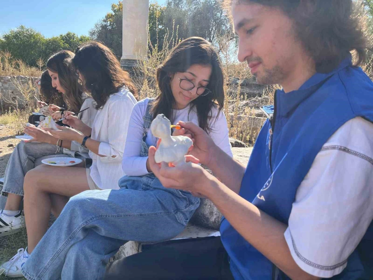 Muğla Gençlik ve Spor İl Müdürlüğü’ne bağlı gençlik merkezlerinden gönüllü gençler, Yatağan Stratonikeia Antik Kenti’nde düzenlenen seramik atölyesiyle tarihin içinde sanatı deneyimledi. Kötekli Gençlik Merkezi, Yatağan Gençlik Merkezi ve Muğla Uluslararası Gençlik Merkezi’nden gelen gönüllü gençler, Stratonikeia Antik Kenti’nde düzenlenen seramik atölyesinde bir araya gelerek sanatla buluştular. Gençler, kazı ekibi eşliğinde antik kentin tarihi özelliklerini öğrendikten sonra güzel sanatlar kulübü kapsamında seramik yapım ve renklendirme çalışmaları gerçekleştirdi. Muğla Sıtkı Koçman Üniversitesi yerleşkesinde bulunan Kötekli Gençlik Merkezi’nden Seray Asya Tekin, “2 yıldır genç ofiste sanat atölyelerine katılıyorum. Bu atölyeyi antik kentte gerçekleştirmek bize ilham verdi. Farklı şehirlerden gelen arkadaşlarımla hem şehri tanıtmak hem de bilgi sahibi olmalarını sağlamak benim için çok değerli bir fırsat oldu. Bu imkanları sunduğu için Gençlik ve Spor Bakanlığımıza teşekkür ederim” ifadeleriyle düşüncelerini paylaştı. Gençler, hem tarihi bir mekanda sanatla buluşarak kişisel ve sosyal gelişimlerine katkı sağladı hem de antik dönemin izlerini taşıyan Stratonikeia’da anlamlı bir deneyim yaşadı.
