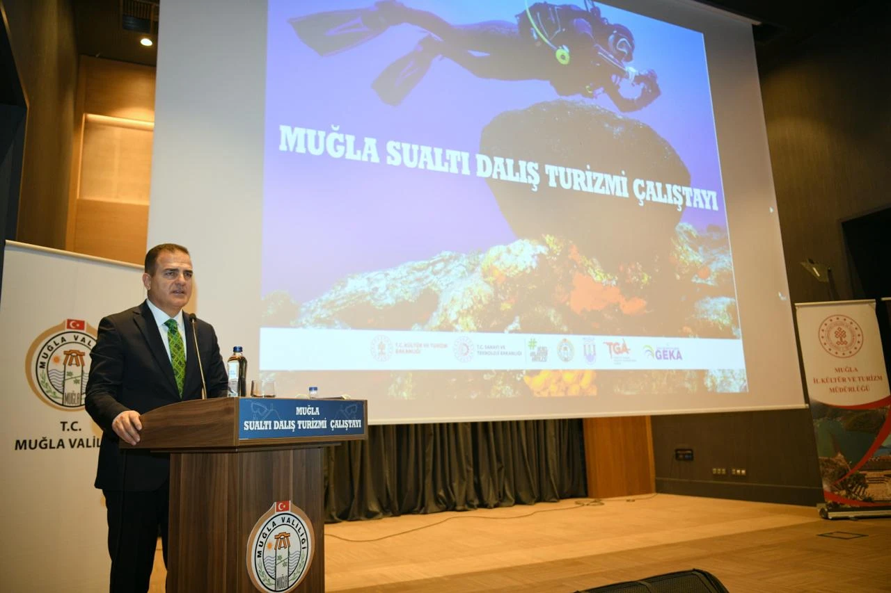 Sualtı dalış turizmi potansiyelinin daha etkin değerlendirilebilmesi ve bu konuda yapılacak çalışmalara yönelik ihtiyaç ve çözüm önerilerinin tespit edilerek, yol haritasının belirlenmesi amacıyla sektörün önemli temsilcilerin yer aldığı çalıştayda konuşan Muğla Valisi Dr. İdris Akbıyık Dünya turizminin gözbebeği olan, Yeryüzü Cenneti olarak bilinen, Ege ile Akdeniz'in buluştuğu Muğla’nın sualtı dalış turizmi alanında yüksek bir potansiyel barındırdığını söyledi.