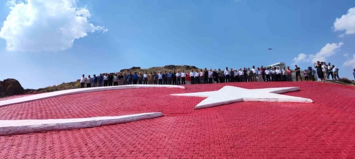 Sivas’ın Şarkışla ilçesinde Büyük Birlik Partisi (BBP) Kurucu Genel Başkanı merhum Muhsin Yazıcıoğlu’nun anısına 1800 rakımlı tepeye 700 metrekare büyüklüğünde Türk bayrağı yapıldı.
