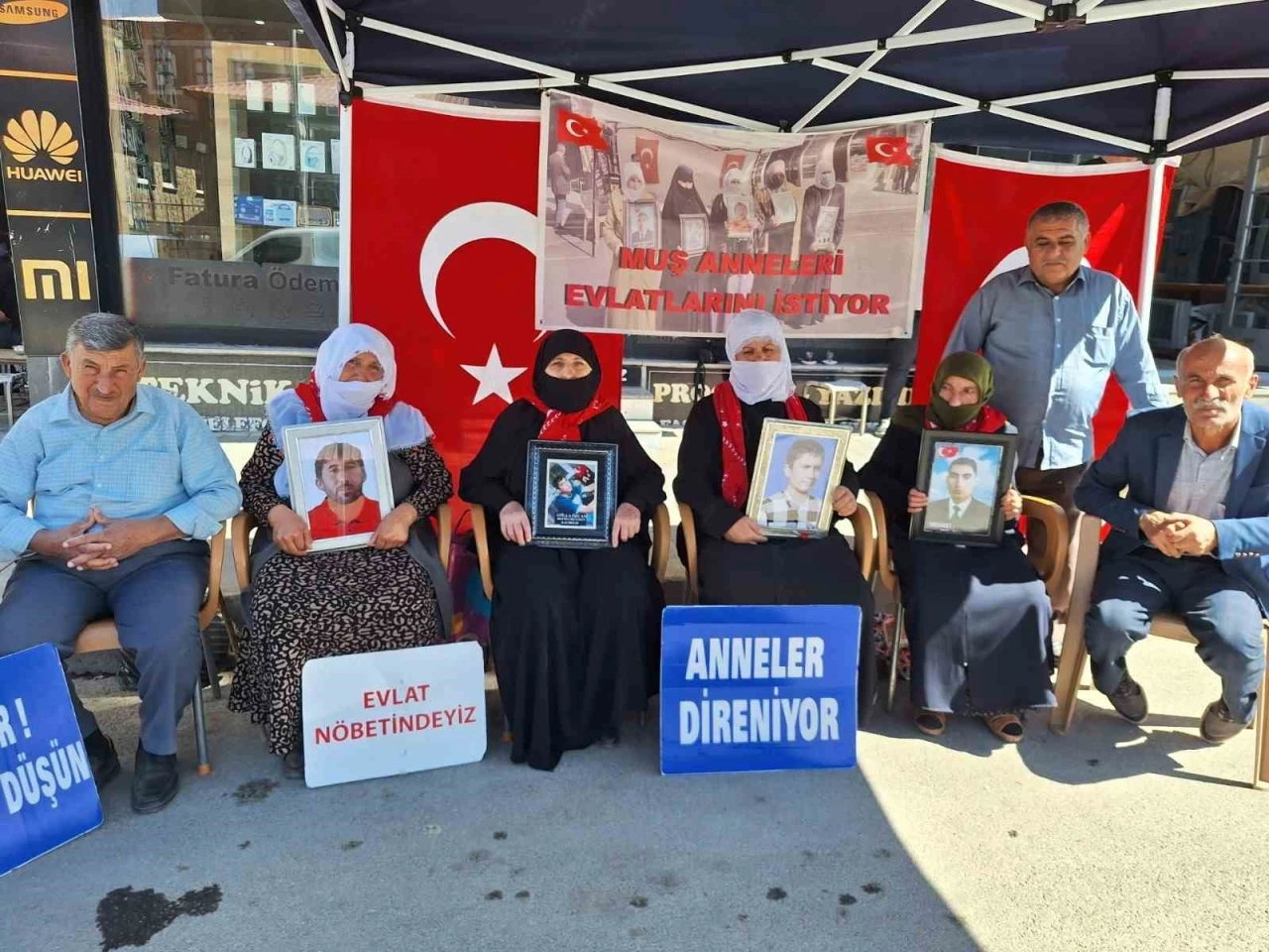 Muş’ta çocukları terör örgütü PKK tarafından dağa kaçırılan ailelerin eylemi devam ediyor.