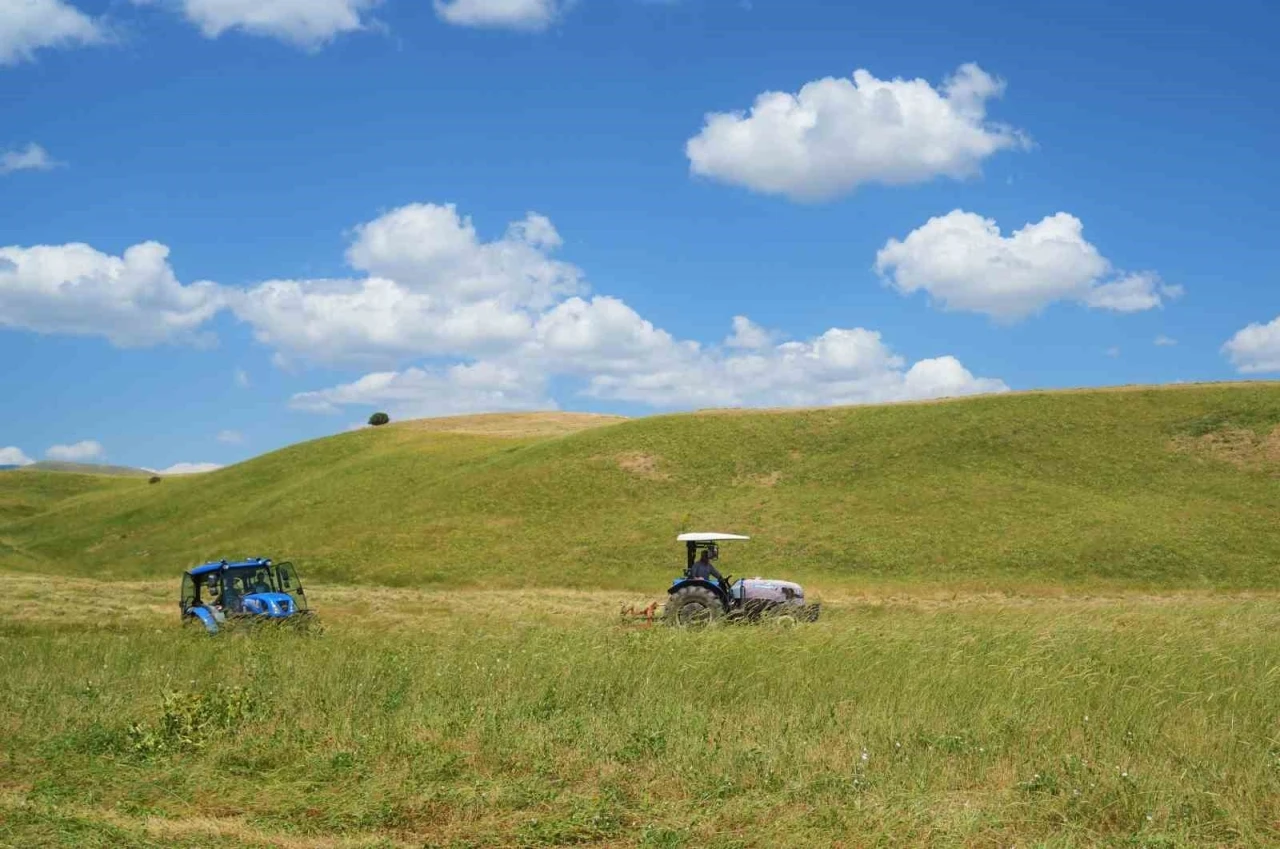 Tarım ve hayvancılığın önemli geçim kaynakları arasında yer aldığı kentte çiftçiler, yaz sıcağına rağmen hayvanların kışlık yem ihtiyacını karşılamak için yoğun çaba sarf ediyor. Günün ilk ışıklarıyla tarlaların yolunu tutan üreticiler, traktör yardımıyla biçtikleri otları daha sonra patoz yardımı ile saman haline getirerek kışa hazırlıyor.