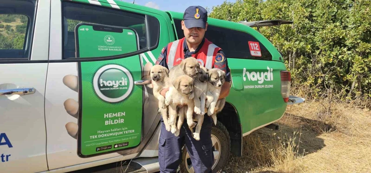 Muş’ta jandarma ekipleri tarafından ormanlık alana terk edilmiş halde bulunan 5 yavru köpek, bakım altına alındı.