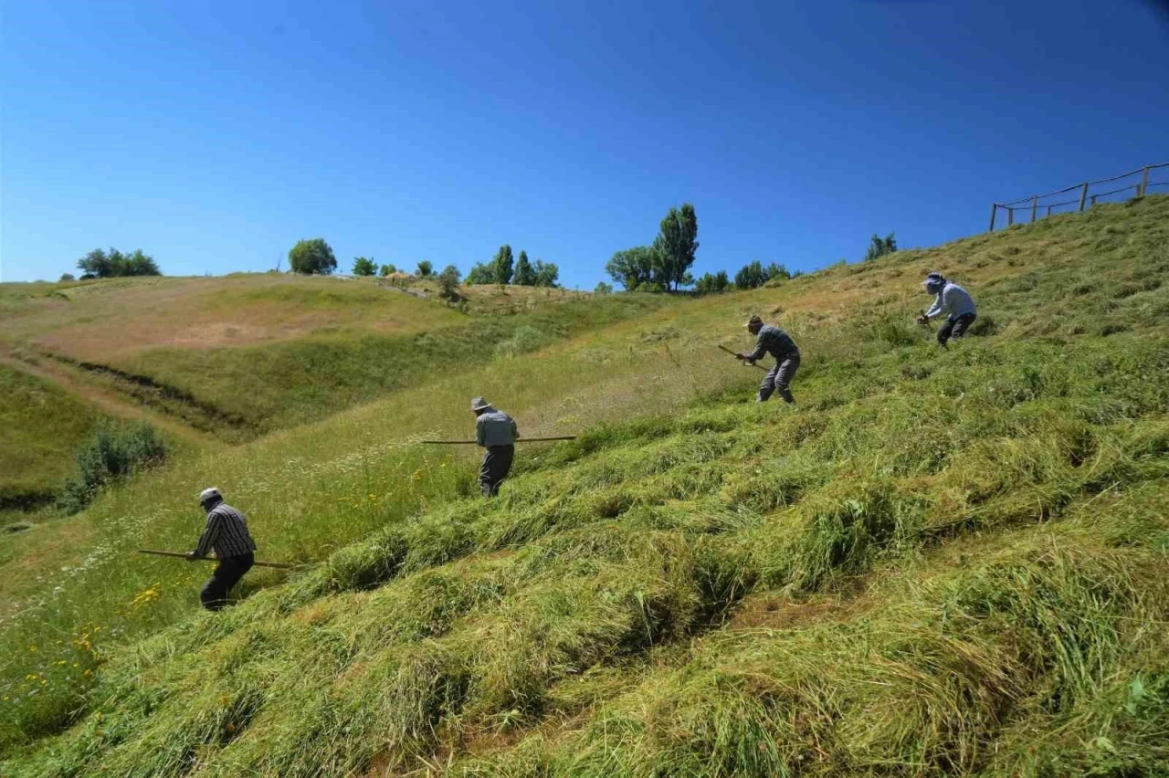 Yaklaşık 40 yıldır ot biçme sezonunda tırpan çektiğini söyleyen Eşref Gürtürk, sabahın erken saatlerinde uyandıklarını belirterek, "Alanyiçi köyünde kalıyorum. Sabah saat dörtte, beşte kalkıyoruz akşam yediye kadar tarladayız. Mecburuz, ihtiyaç var. Bizim araziye motor girmiyor, bu yüzden tırpanla biçiyoruz. Böyle olunca işimiz daha da zor oluyor. Ama arkadaşlarla birlikte çalışıyoruz. Birbirimize yardımcı oluyoruz. Bu şekilde zorluklar biraz hafifliyor. Kırk yılı aşkın süredir tırpan işiyle uğraşıyorum. Bu bizim mesleğimiz oldu artık. Kolay değil gerçekten çok zor ama ihtiyaç var, çalışmak zorundayız. Hem hayvanın hem de insanın ihtiyacı var. Ot boşa gitmesin diye emek veriyoruz. Oğlum da gelmiş, Allah razı olsun. Hanımda bizlere çok destek oluyor. Yemeğimizi çayımızı yapıyor. Hep birlikte çalışıp, işi bitirmeye çalışıyoruz" dedi.