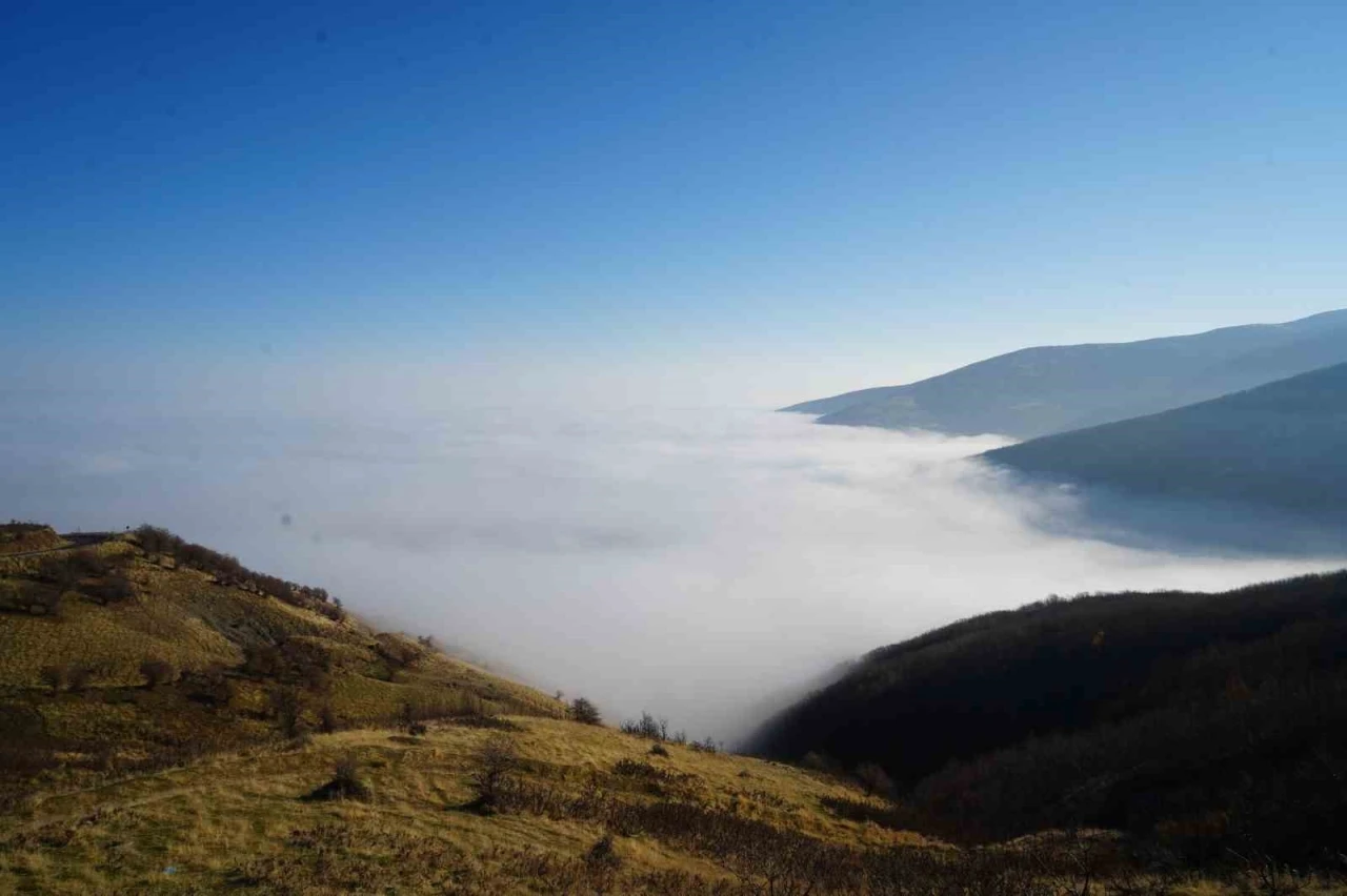 Muş Ovası’nı ve dağların eteklerini kaplayan sis, kartpostallık görüntüler oluşturdu.