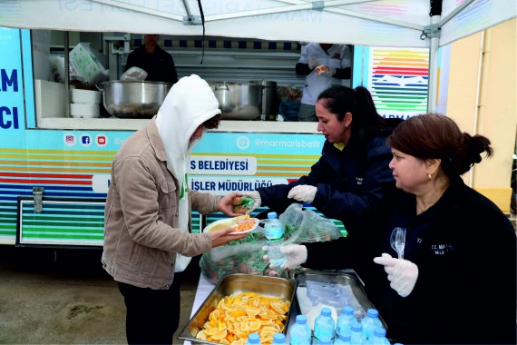 Sosyal belediyecilik ve vatandaş odaklı hizmetleri ön planda tutan Marmaris Belediyesi, final sınavları döneminde olan üniversite öğrencilerine sıcak yemek ikramında bulunmaya devam ediyor. Geçtiğimiz hafta Perşembe ve Cuma günü İçmeler Mahallesi’nde yer alan Muğla Sıtkı Koçman Üniversitesi Turizm Meslek Yüksekokulu öğrencilerine ikramda bulunan Belediye ekipleri bugün de aynı üniversiteye bağlı Sağlık Meslek Yüksekokulu önündeydi. Sınav haftasında öğrencilere destek olmak amacıyla 1000 kişilik çorba ve makarna dağıtıldı. Öğle yemeği saatinde yemeklerini görevlilerden alan öğrenciler, ikram için Belediye Başkanı Mehmet Oktay’a teşekkür etti. Çalışmanın sınav haftası boyunca devam edeceği belirtildi.