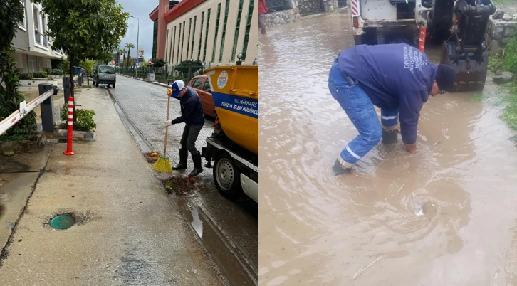 Yağmur öncesinde suyun rahatça akabilmesi için mazgal kapaklarını açan ekipler, su giderlerinde tıkanmaya neden olabilecek yaprak ve diğer atıkları da temizledi. Öte yandan sorun yaşanan yerlere de müdahale edildi.