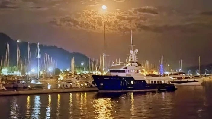 Marmaris’te akşam saatlerinde denizdeki yansımasıyla dolunay izleyenleri adeta mest etti.