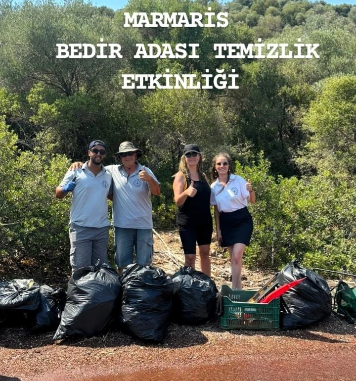 Türkiye’nin Avrupa’ya açılan penceresi konumundaki Muğla’nın Marmaris ilçesinde cevreci vatandaşlar başta olmak üzere belediye temizlik görevlileri ne çekiyorsa atıklardan çekiyor. Günde 5 bin konteyner temizlenmesine rağmen özellikle piknik ve kamp alanları ile koylar atıklardan geçilmiyor. Son olarak Marmaris Doğa Gönüllüleri Bedir Adası’nda çevre temizliği gerçekleştirilerek 8 torba atık toplandı.