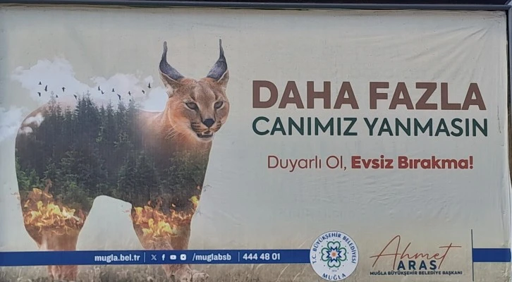 Muğla Büyükşehir Belediye Başkanı Ahmet Aras, Muğla’daki karayolu kenarındaki billboardlar da verdiği mesajında, “Daha fazla canımız yanması, duyarlı ol, eviz bırakma’ diyerek yanan sadece orman değil, ormanlık alanlardaki yaban hayatını da dikkat çekti.